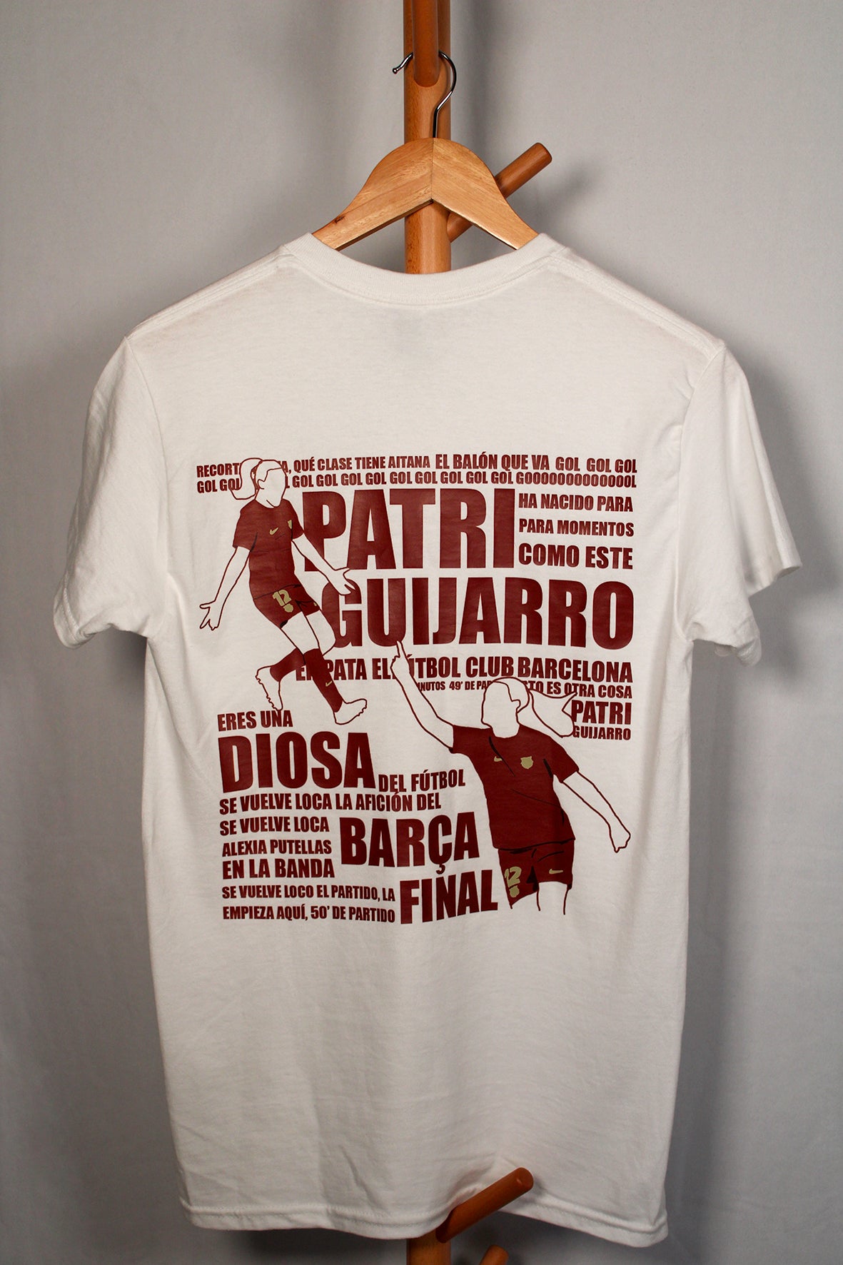 En la parte delantera, nos inspiramos en el logo del Barcelona, donde incluimos nuestro dibujo de la copa.