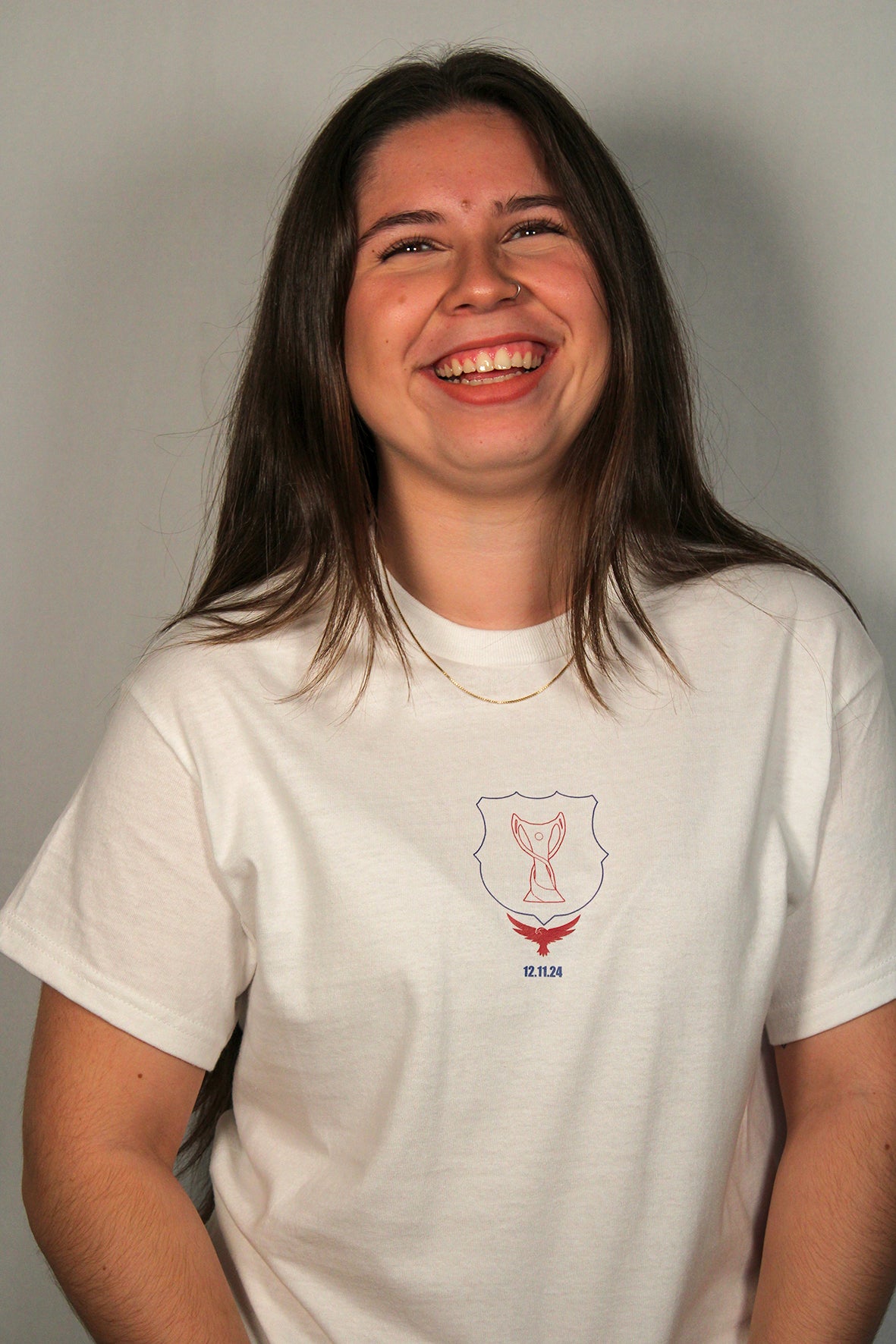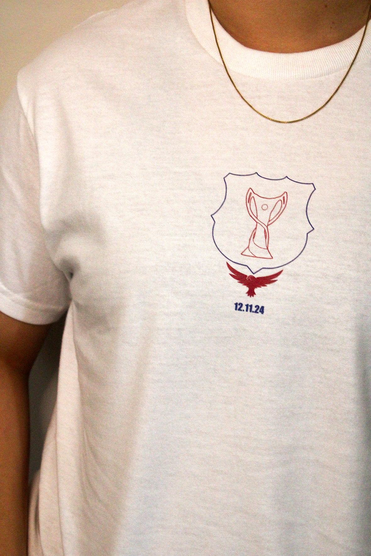 En la parte delantera, nos inspiramos en el logo del Barcelona, donde incluimos nuestro dibujo de la copa.