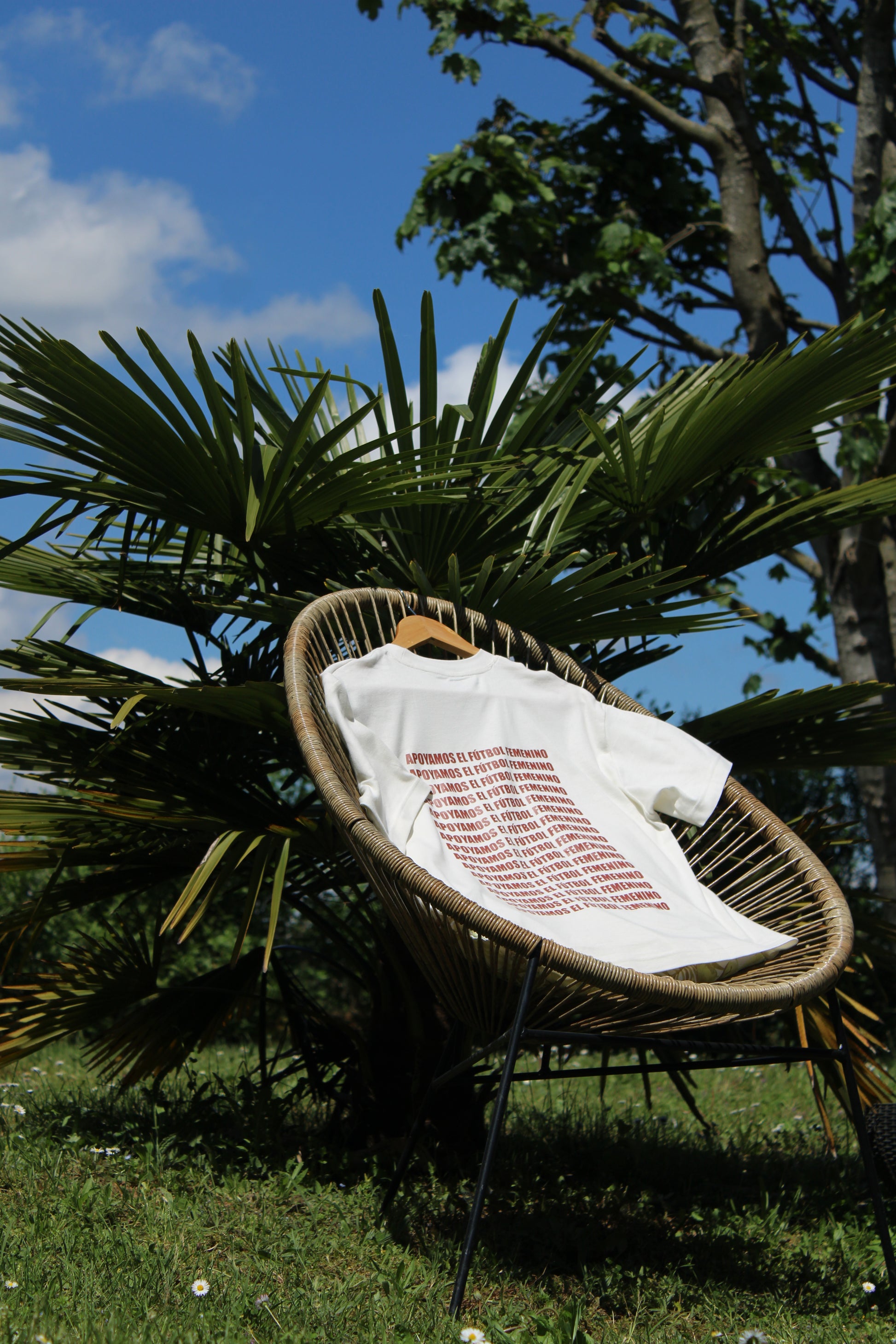 En la espalda, un mensaje de apoyo al fútbol femenino en español.