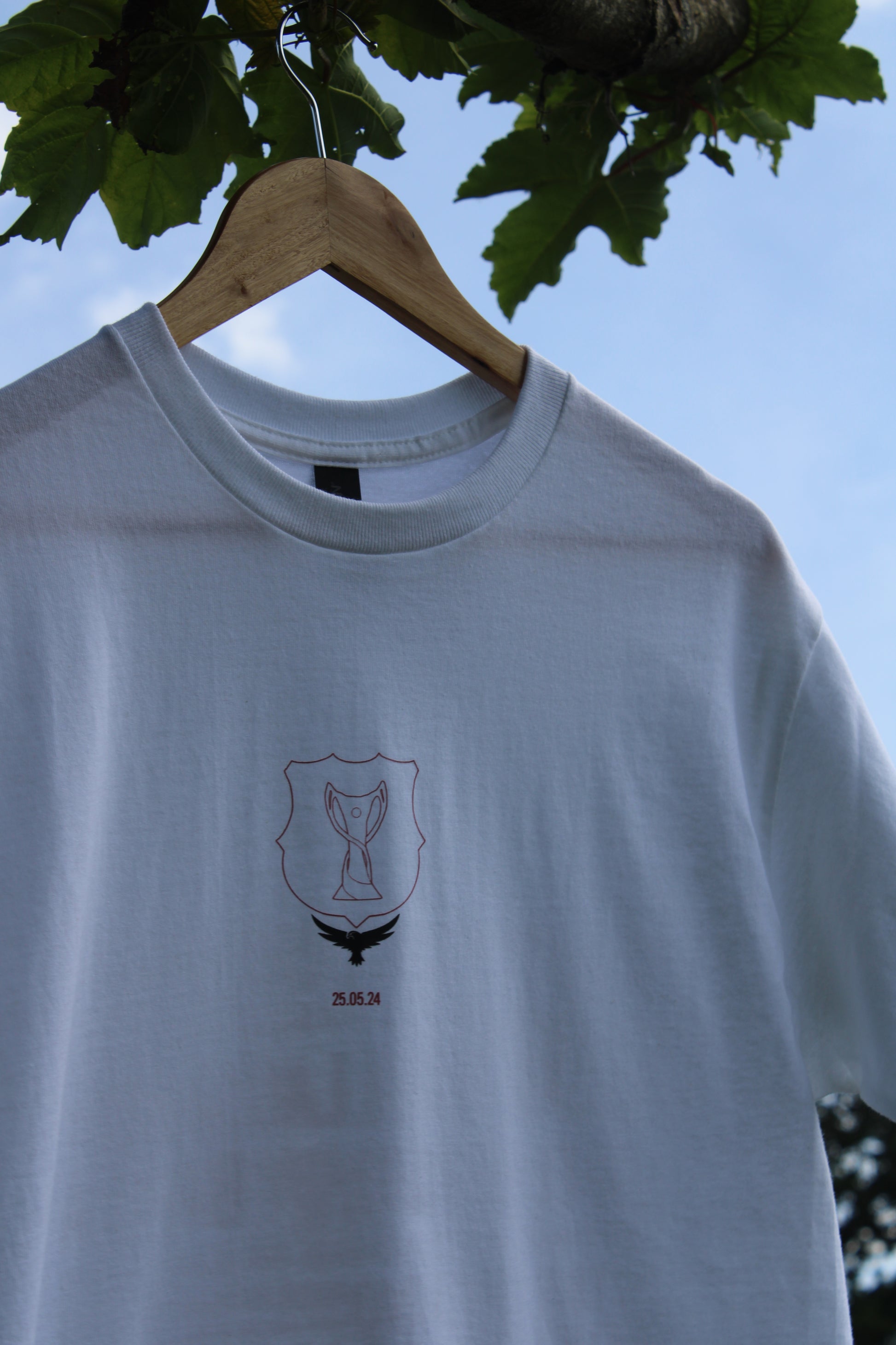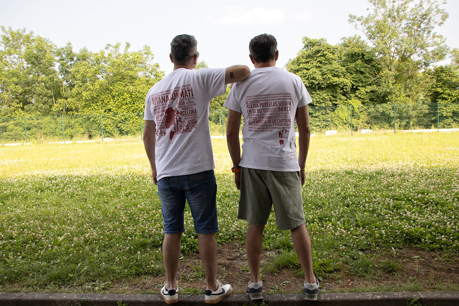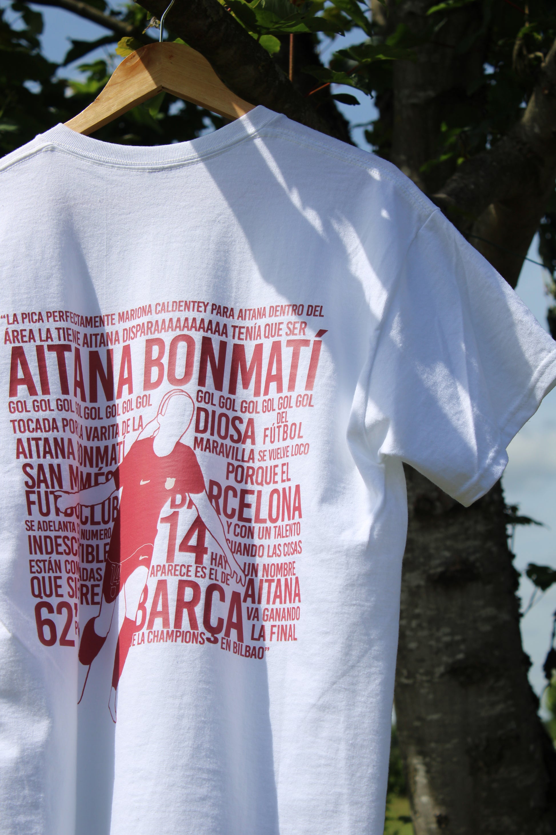 En la parte delantera, nos inspiramos en el logo del Barcelona, donde incluimos nuestro dibujo de la copa.